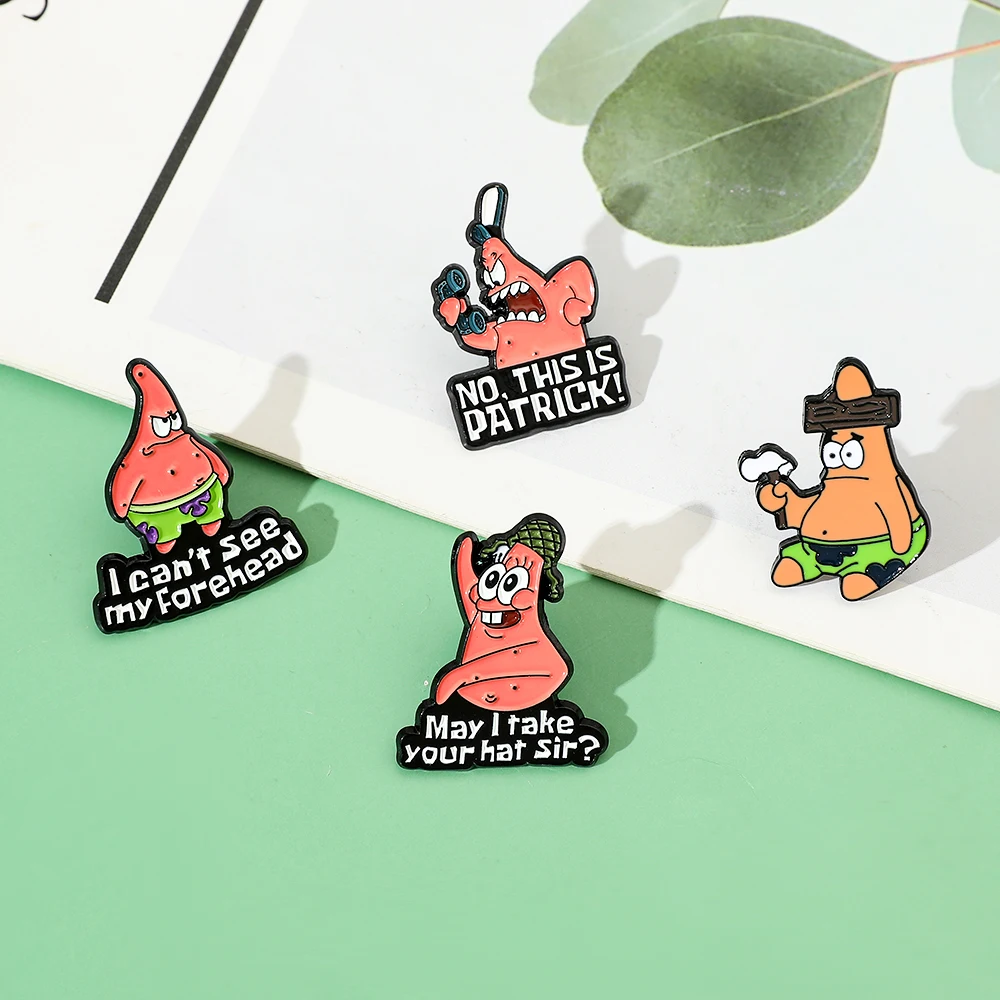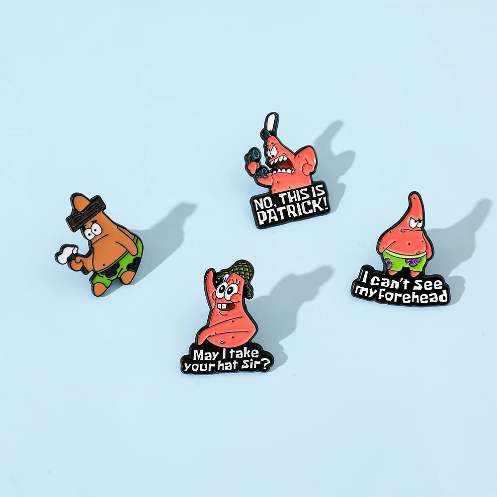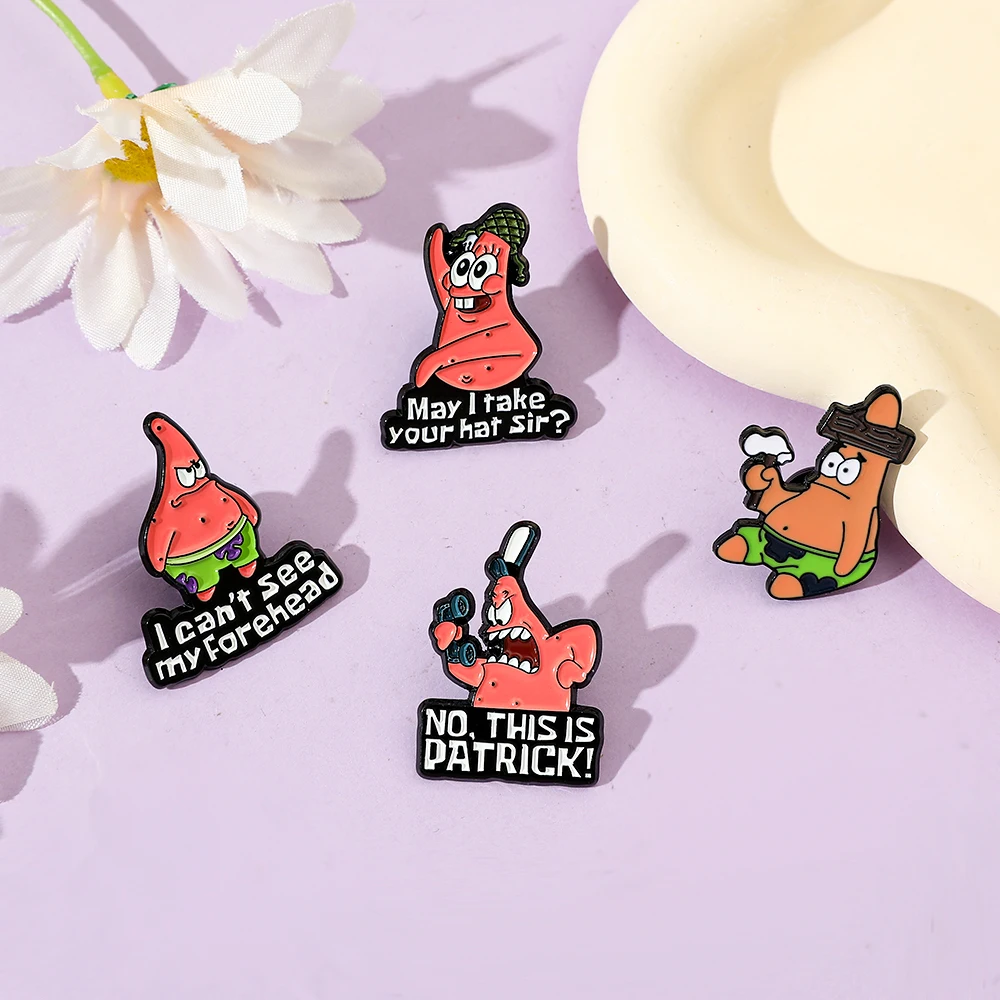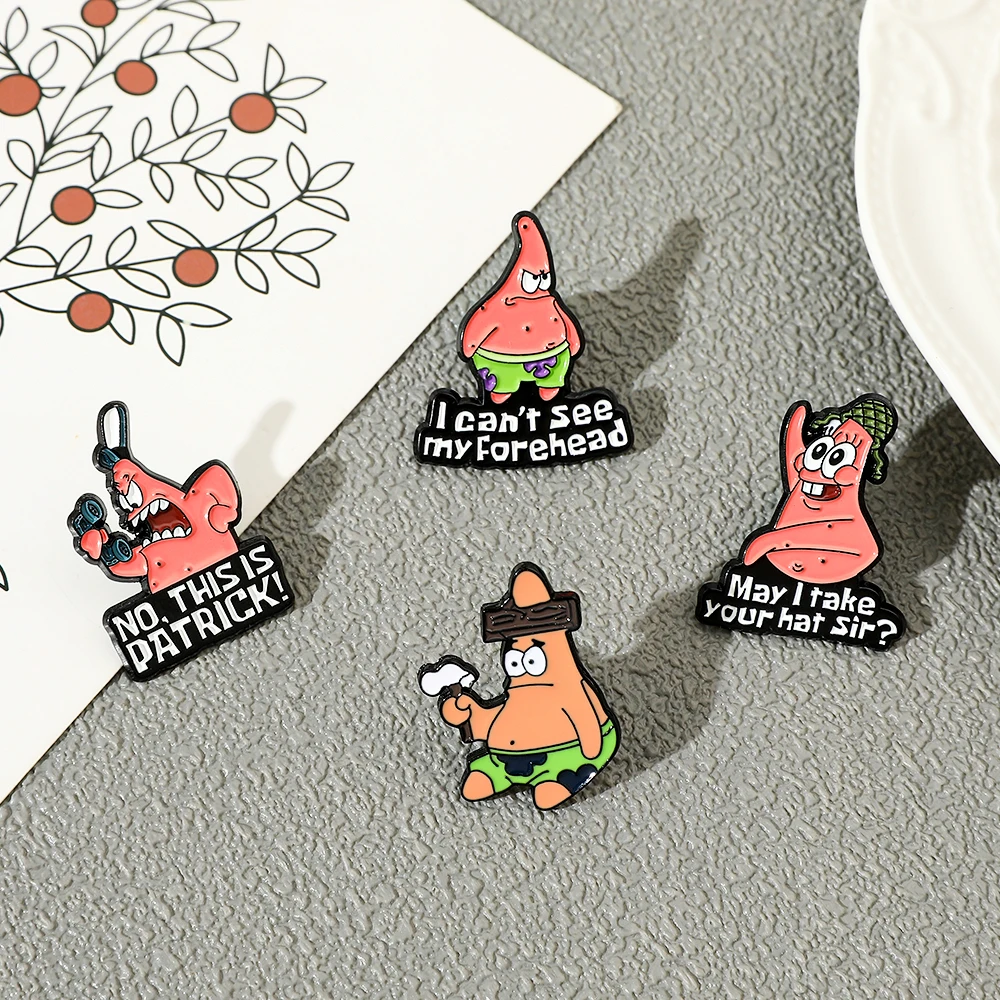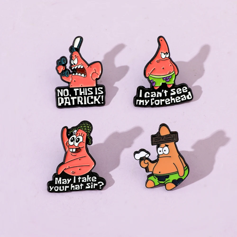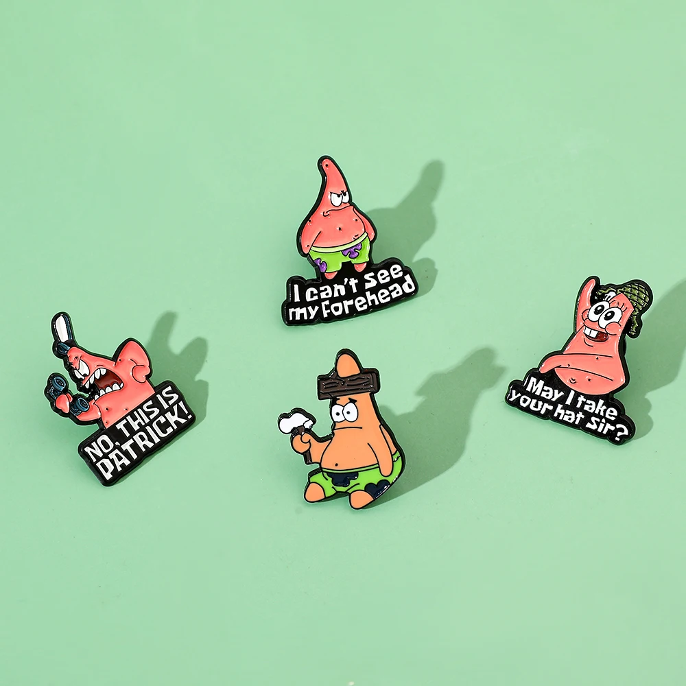 🍥 4 Pcs Anime Patrick Star Enamel Brooch Set – Funny Cartoon Pins for Fashion & Accessories 📌🌟