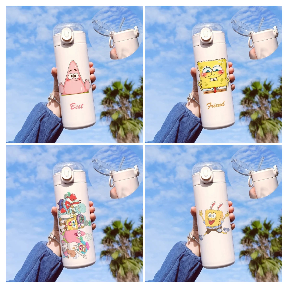🍥 400ML SpongeBob Cartoon Insulated Cup – Thermos Tumbler Portable Travel Bottle with Patrick Star Design 🧊🚶♂️