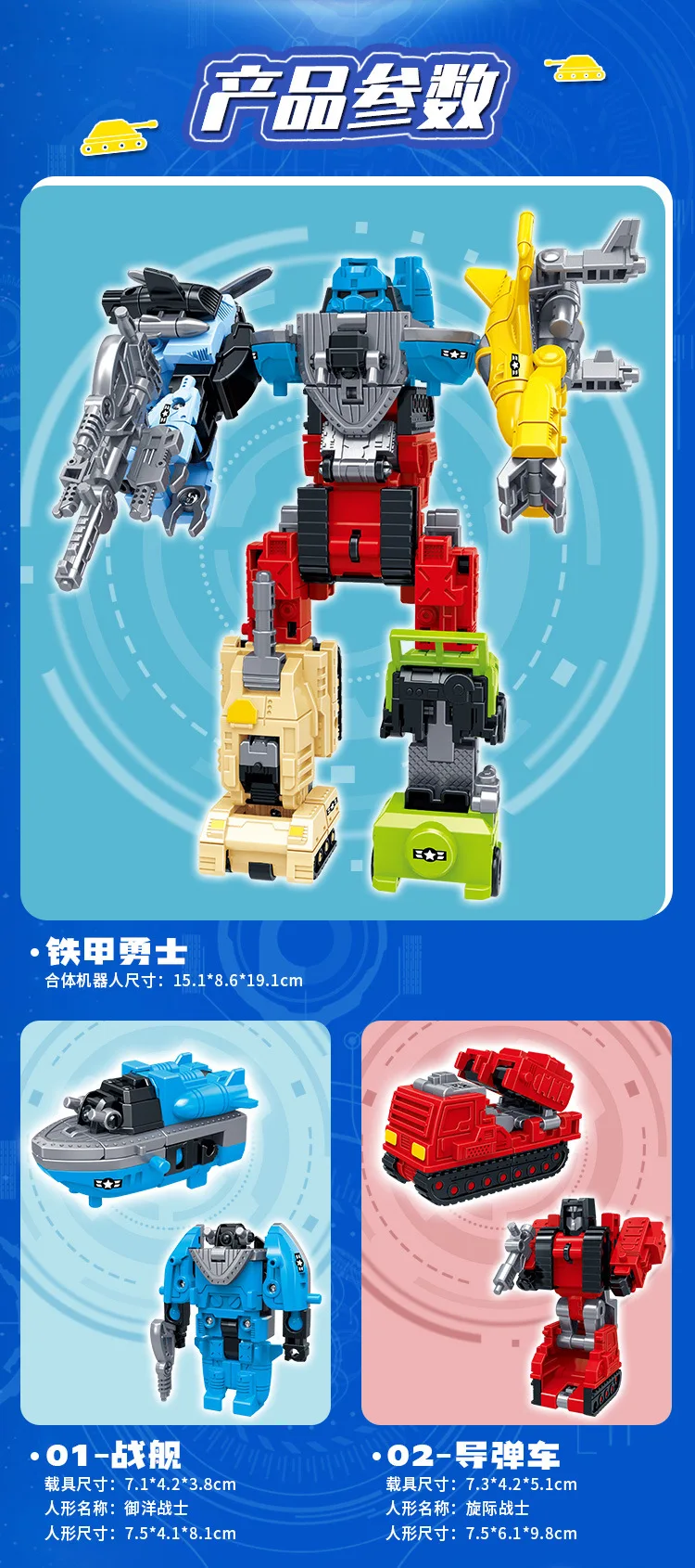 🔄 Transforms between 6 different modes including robot, tank, and truck