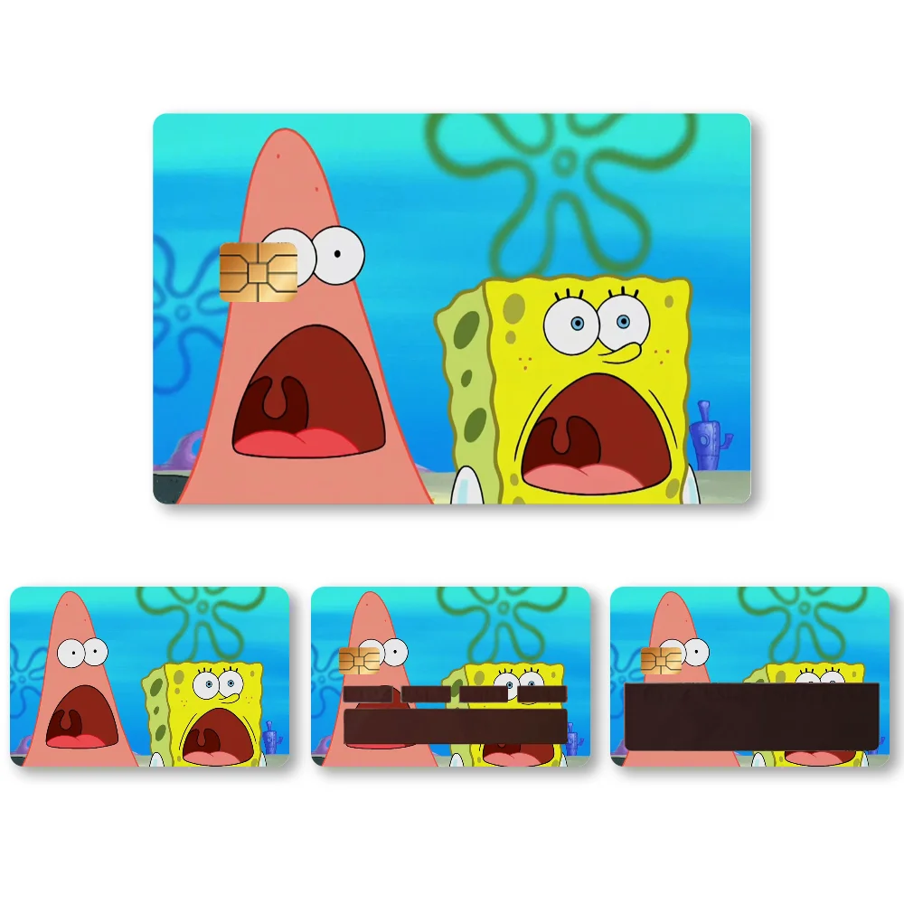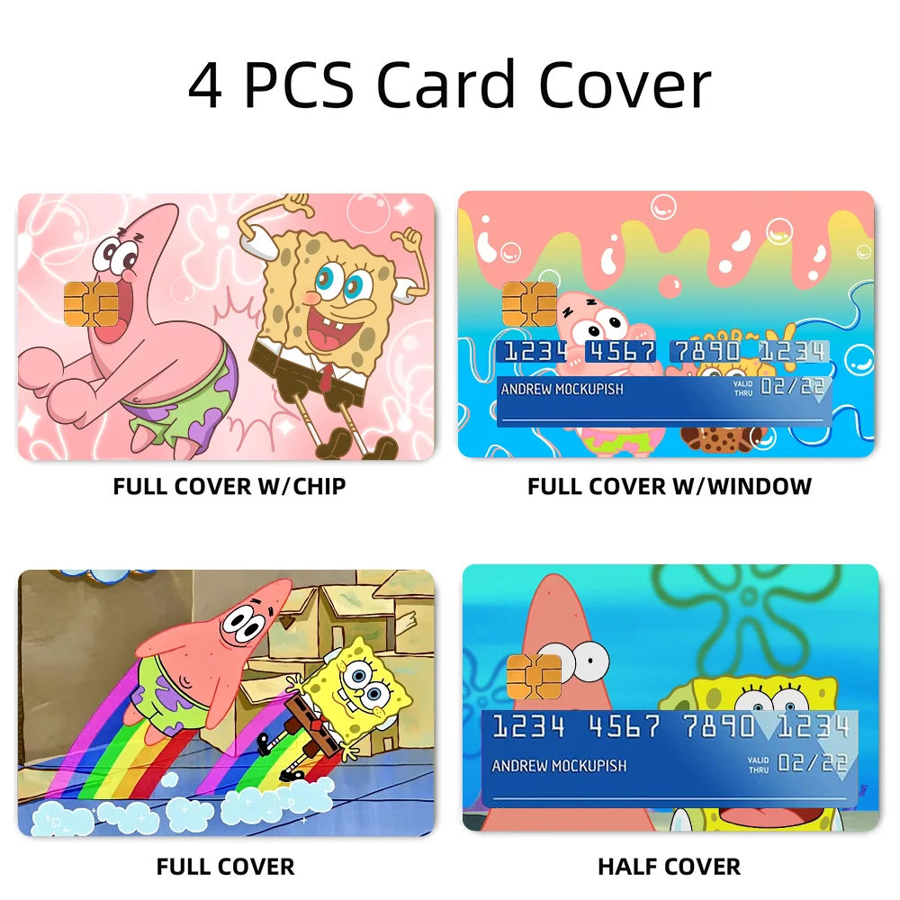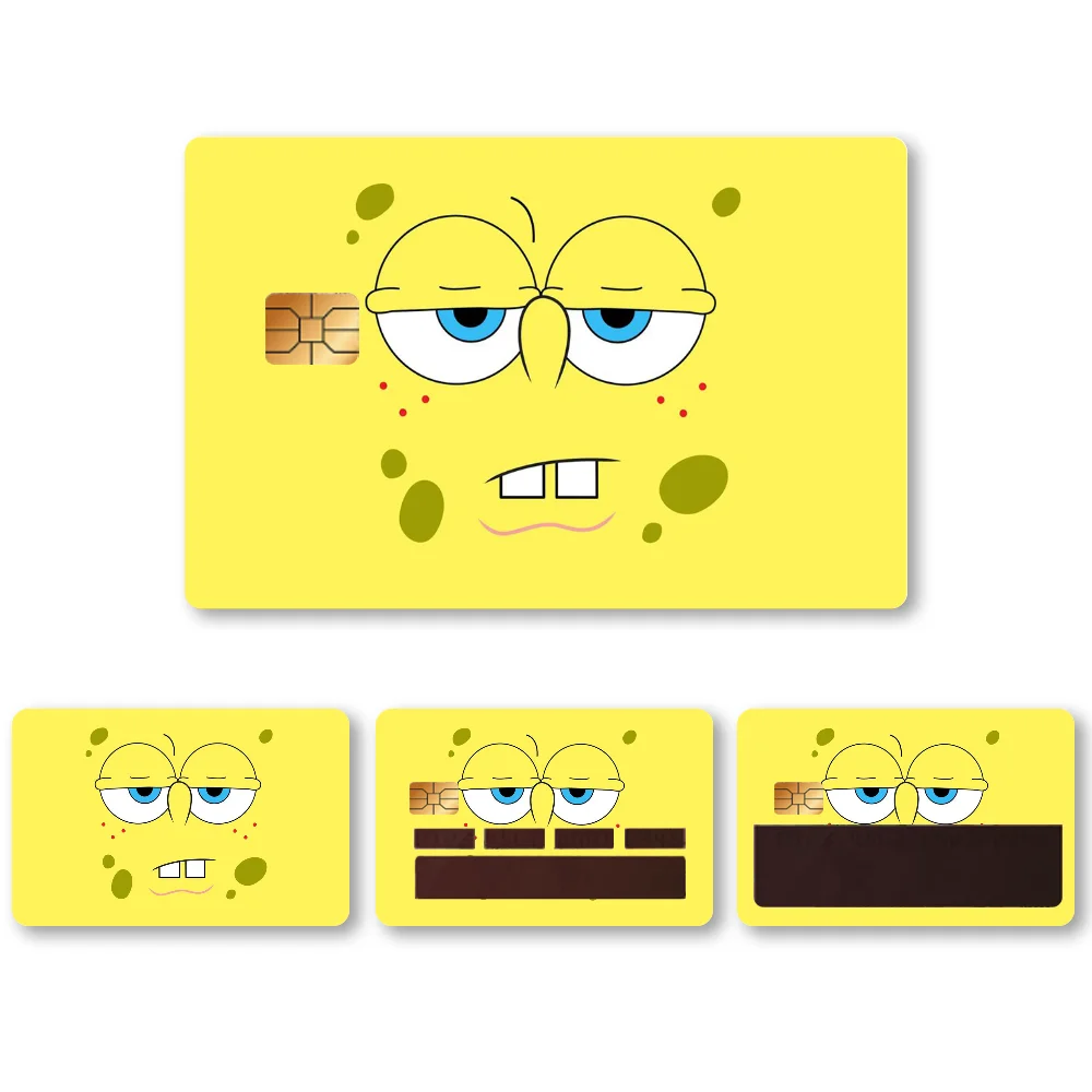🧽 Anime Spongebob Kawaii Stickers – 4PCS PVC Card Skin Stickers for Bank, Bus & Metro Cards | Cute Case Decoration & Gift 🎁💳