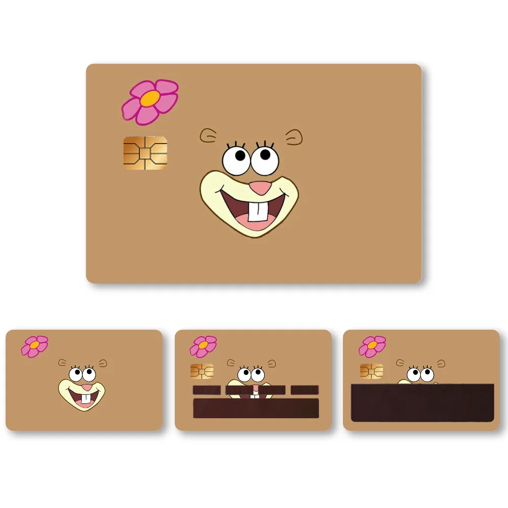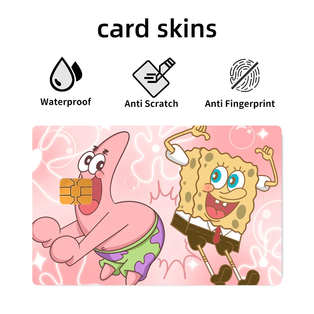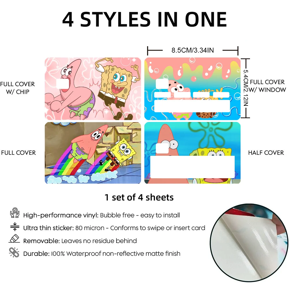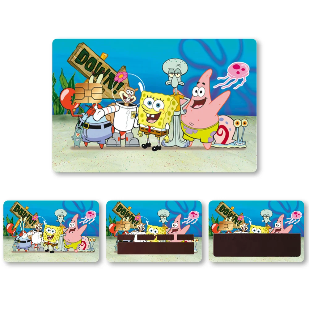 🧽 Anime Spongebob Kawaii Stickers – 4PCS PVC Card Skin Stickers for Bank, Bus & Metro Cards | Cute Case Decoration & Gift 🎁💳
