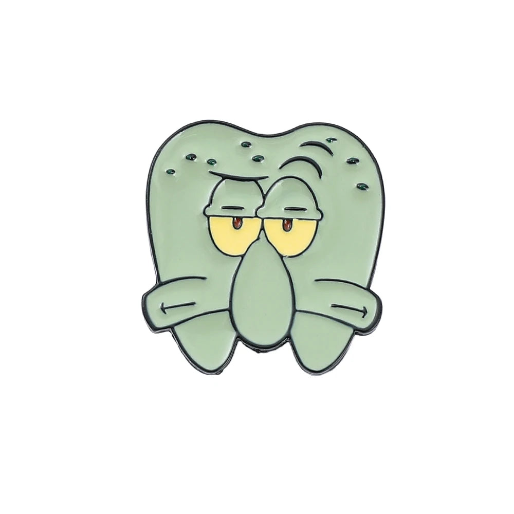 🍥 Anime SquarePants Enamel Brooch – Funny Tooth-Shaped Patrick & Squidward Badge Accessories 😁📌