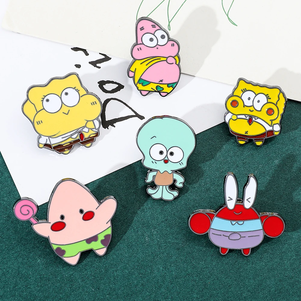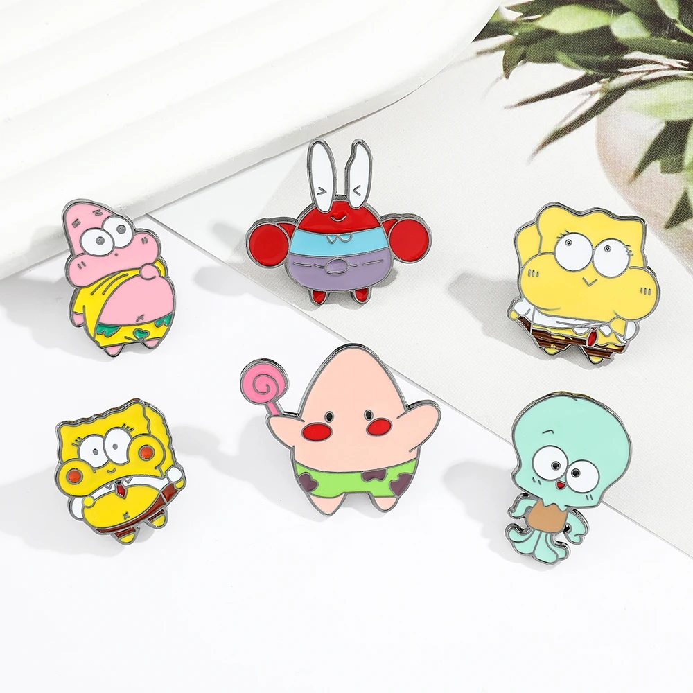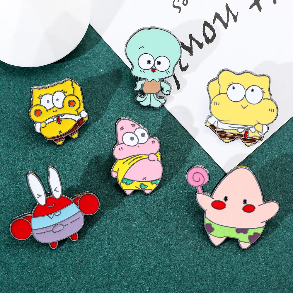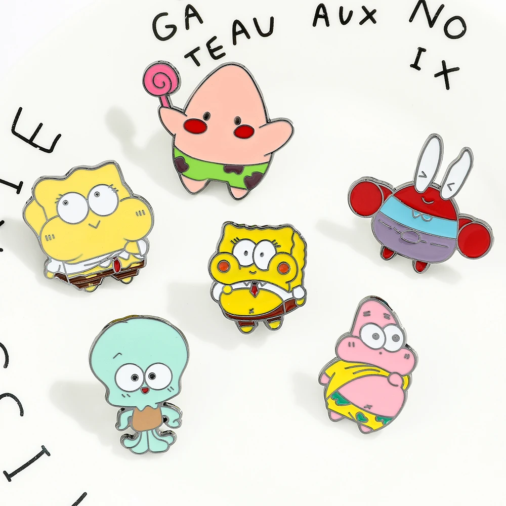 🌟 Cartoon Anime SpongeBob SquarePants Badges – Patrick, Star & Gary Lapel Pins 🎁✨