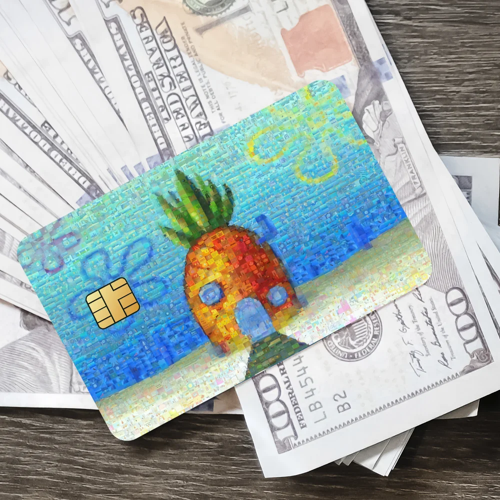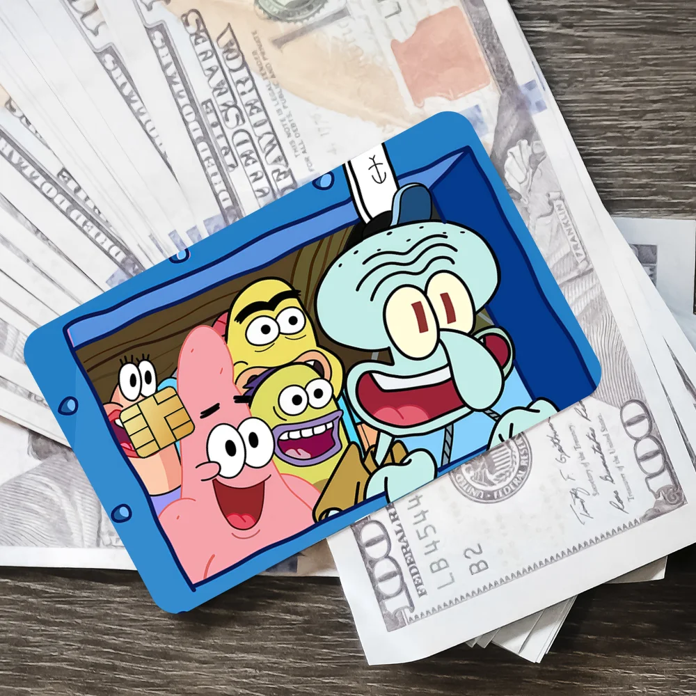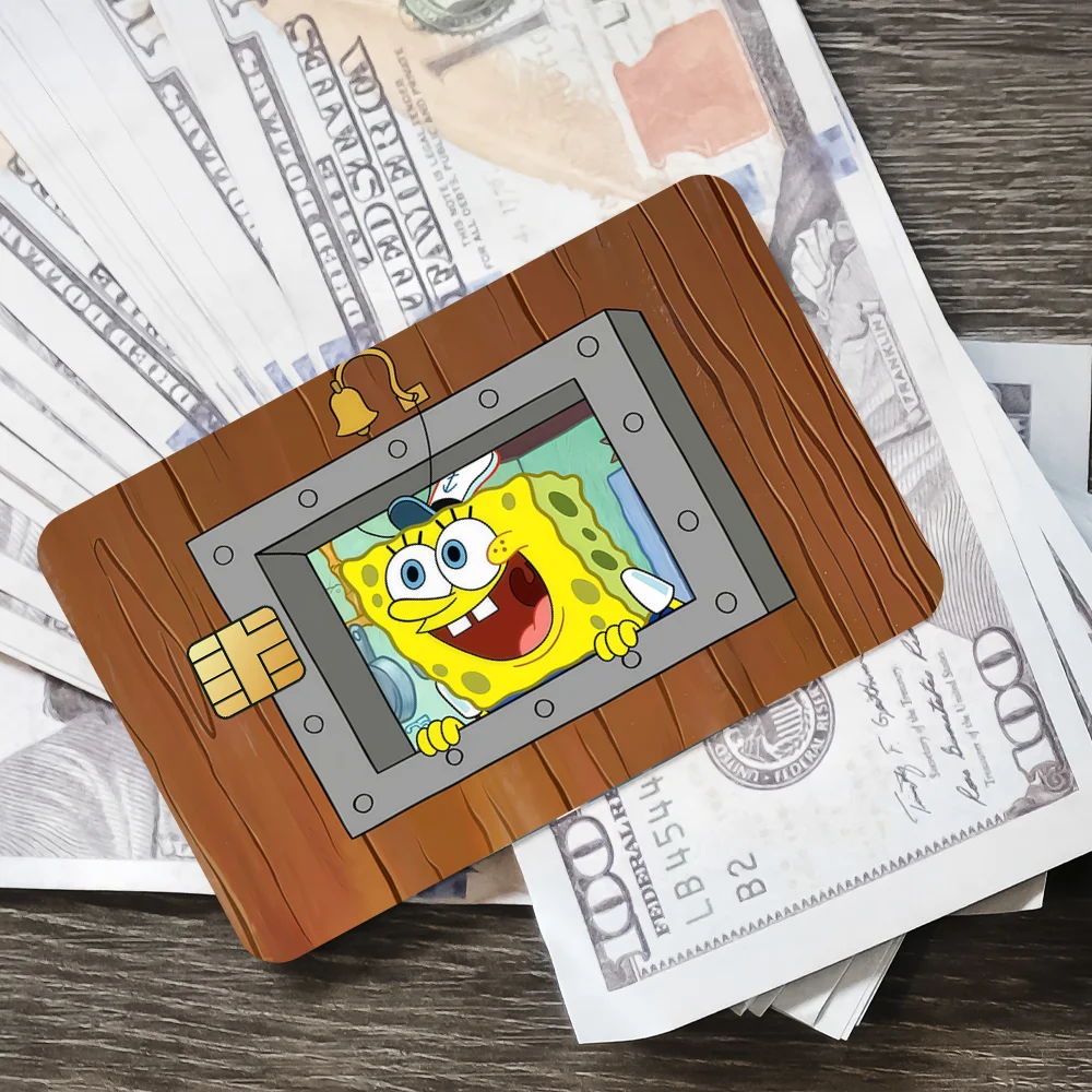 Personalize and protect your cards with this 4-piece set of Bikini Bottom-themed S-Sponge-B-Bob K film skin covers — perfect for credit, debit, bank, and bus pass cards with cute cartoon designs!