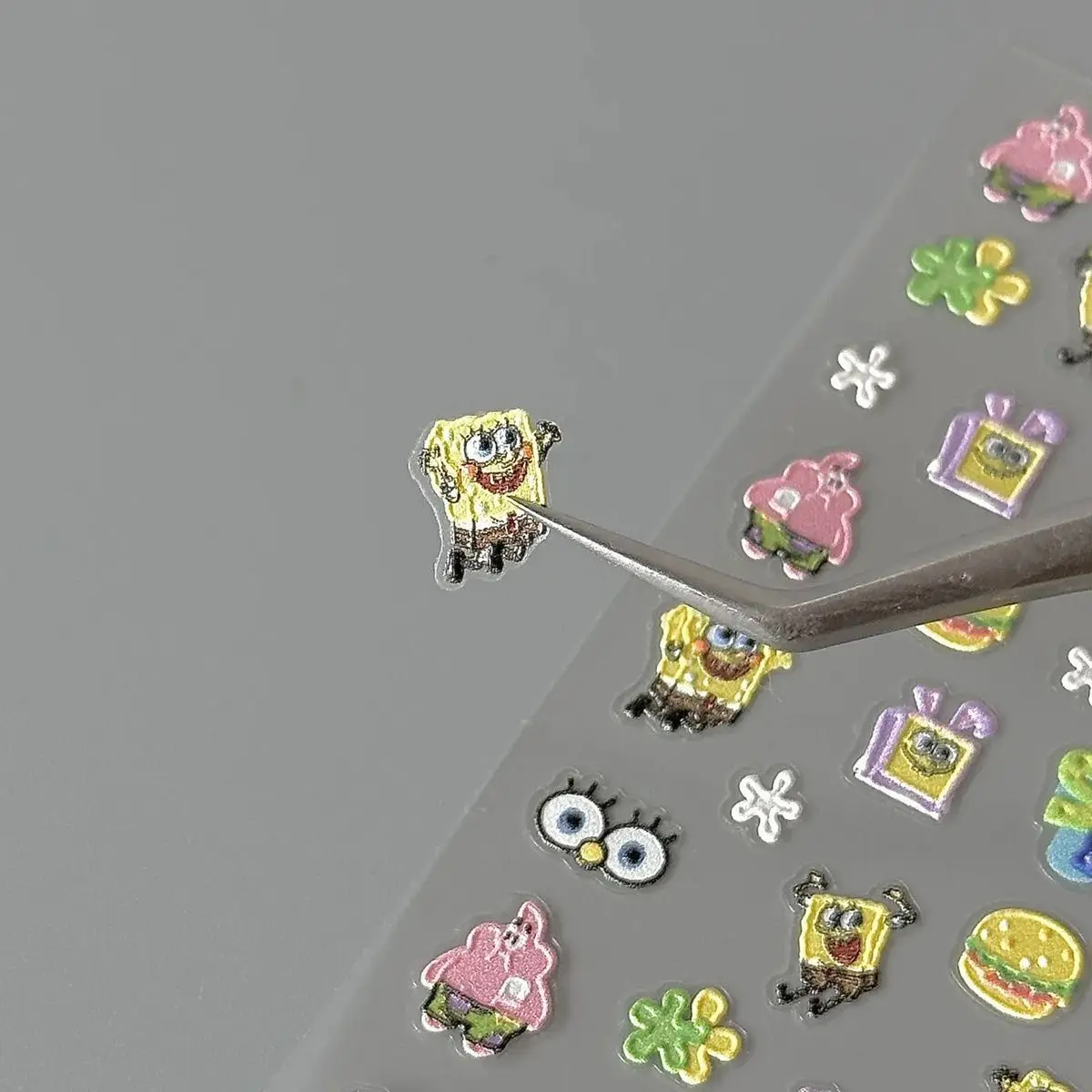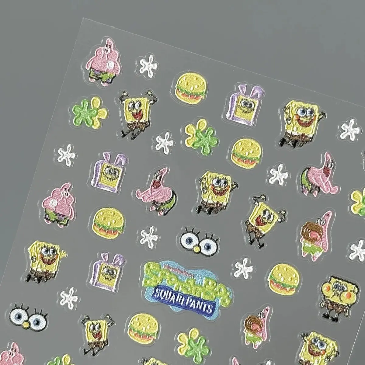 ✨ Cute SpongeBob-themed relief stickers, ideal for nail art, phone cases, and camera decoration