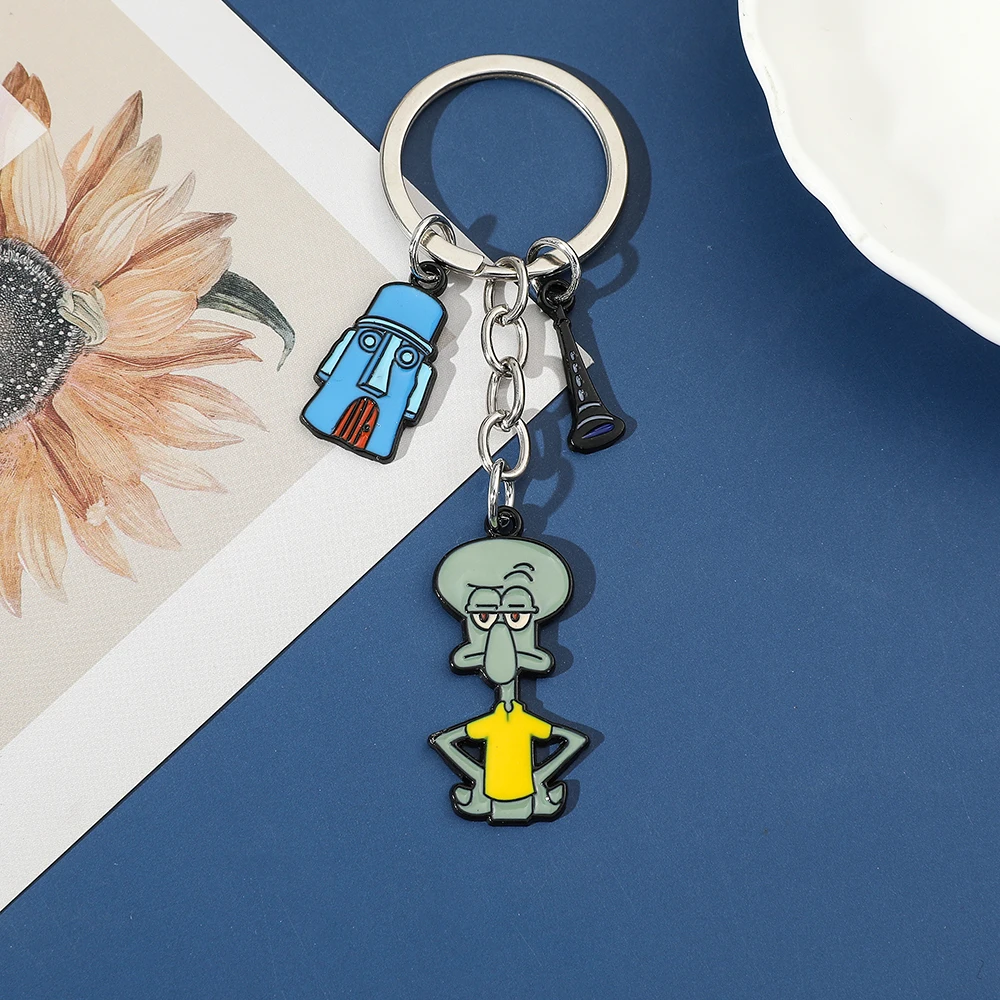 🧽 Classic SpongeBob SquarePants Keychain – Cute Cartoon Figure Pendant Featuring Squidward Tentacles πŸ”‘πŸŽ‰