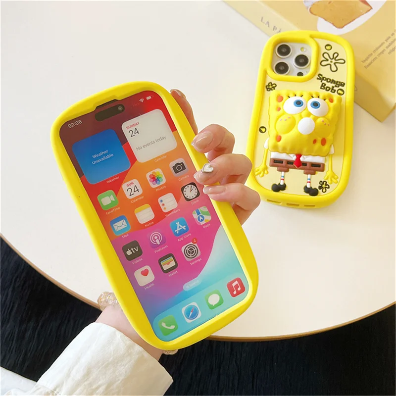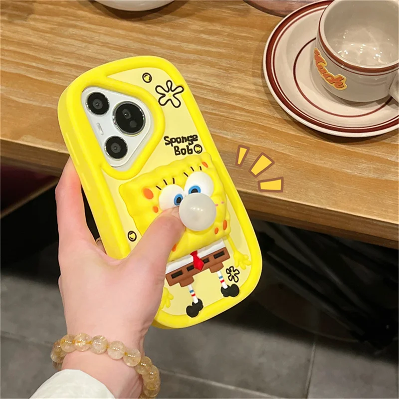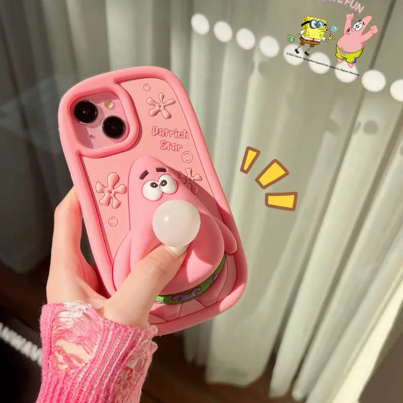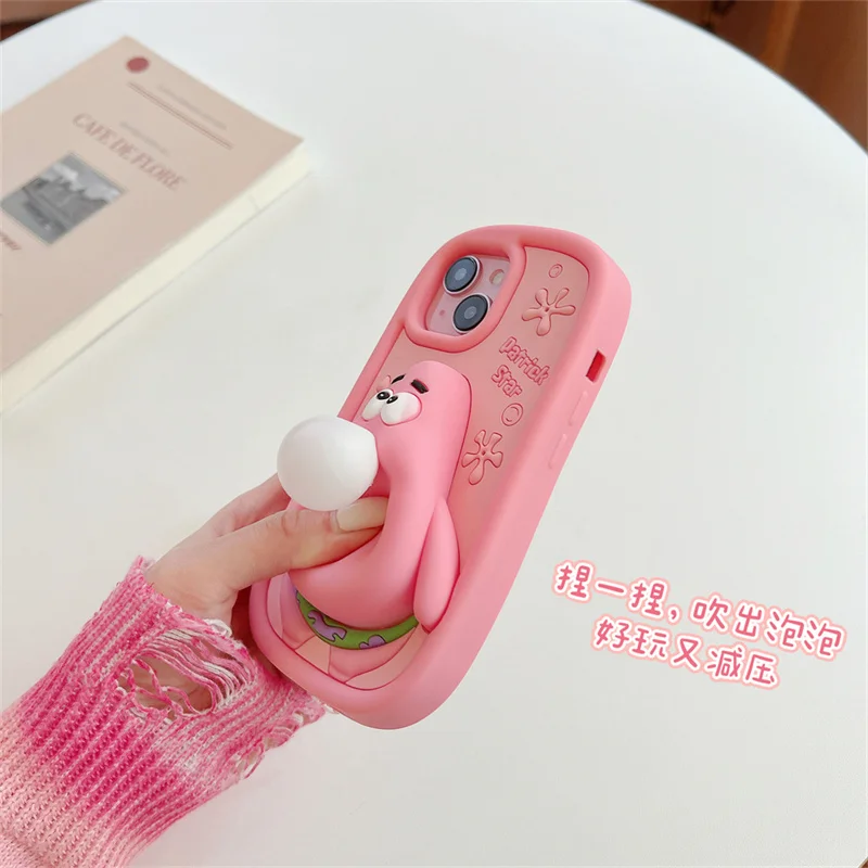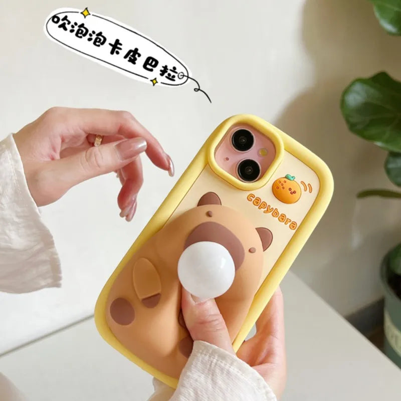 🧽 Cute Cartoon Capybara SpongeBob Patrick Star Stitch Soft Silicone Blowing Bubble Cover – For iPhone Series 📱✨
