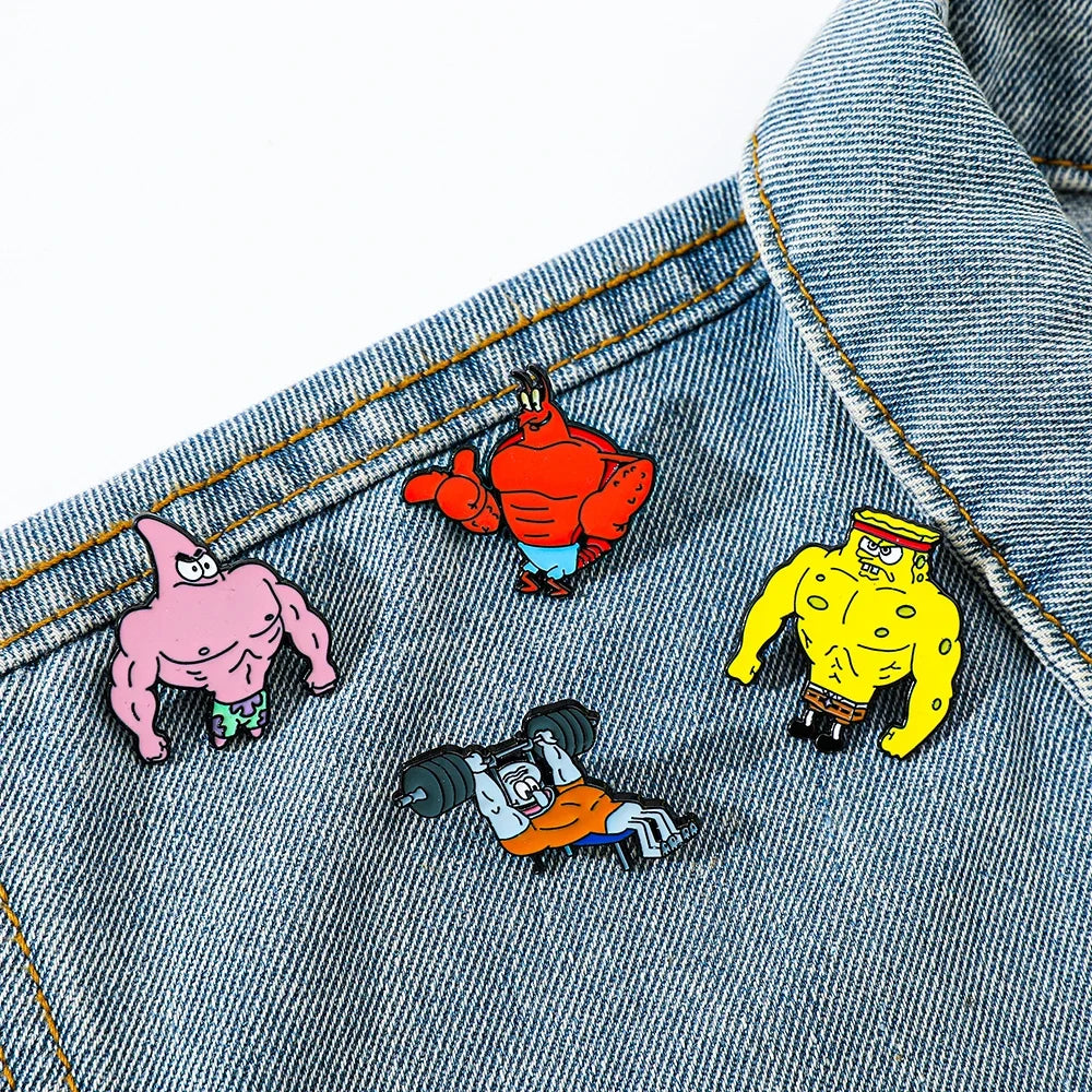 🎨 Cute Cartoon Enamel Pin – Kawaii Anime Squidward Tentacles & Patrick Star Badge Brooch 🧽✨