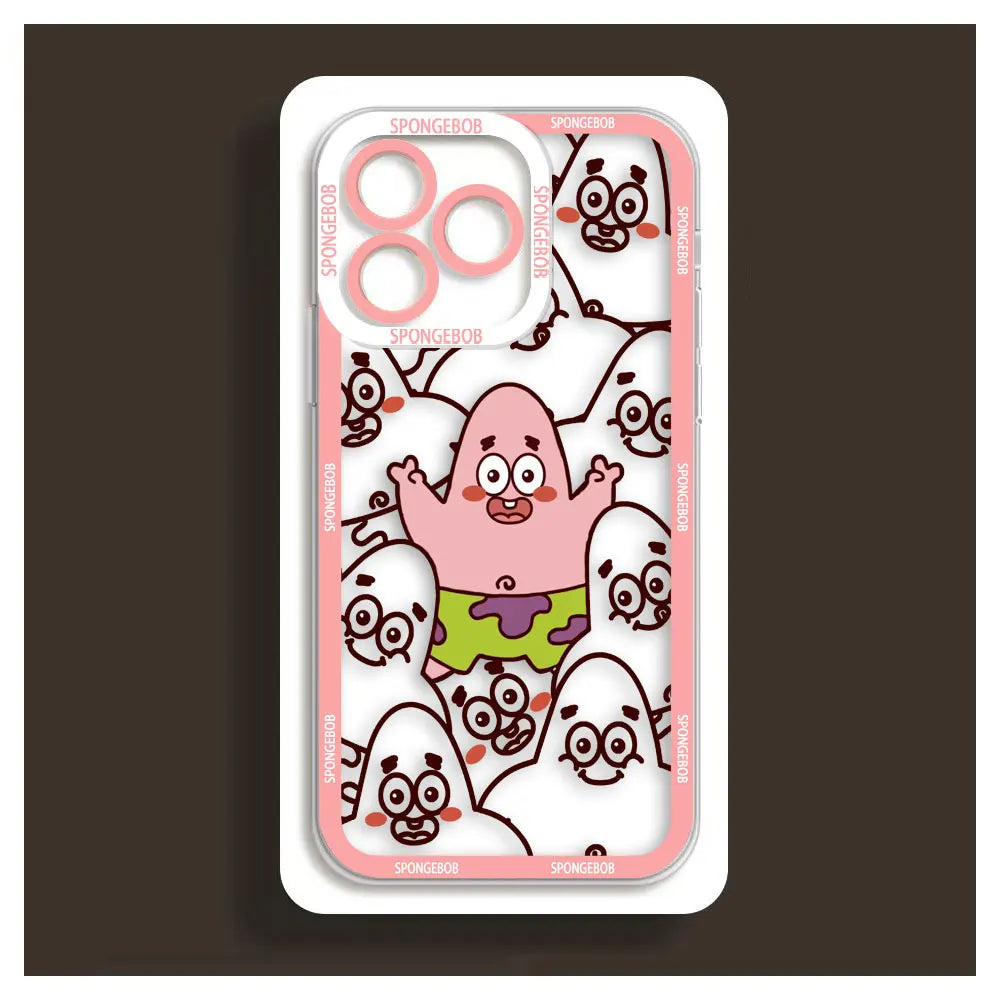 🧽 Cute Cartoon SpongeBob Patrick Star Angel Eyes Clear Phone Case – For iPhone Series 📱✨