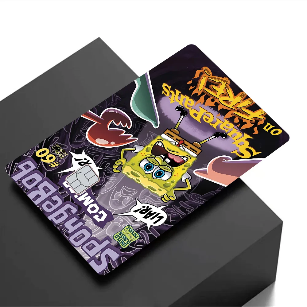 Give your big credit or debit cards a fresh, fun makeover with these 2024 Cute Sponges and B-Bob anime cartoon skin stickers — stylish and protective film tape cases for the front side of your cards!
