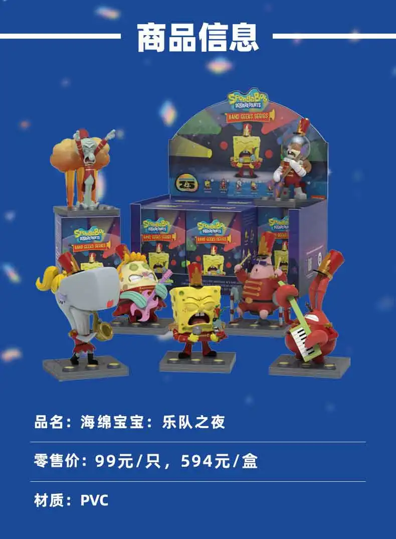 Unleash the fun with the Genuine SpongeBob SquarePants Band Night mysterious blind box! Each box contains a trendy collectible figure perfect for fans and collectors looking for a surprise holiday gift.