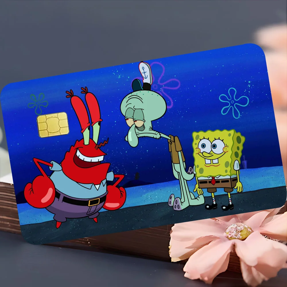 S-SpongeBob Anime Spend Or Save Funny Shell On Off Ultra Thin No Fade Sticker Skin Cover Film For Debit Credit Card