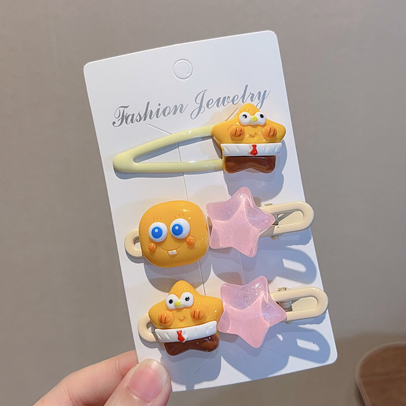 🎀 SpongeBob & Patrick Star Hairpin & Hair Rope Set – Cute Cartoon Anime Hair Accessories for Girls 🧽✨